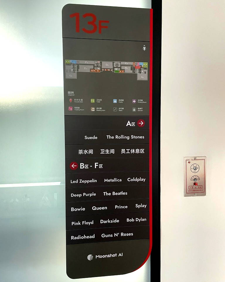 Nombres de las oficinas y salas de juntas en Moonshot.ai.